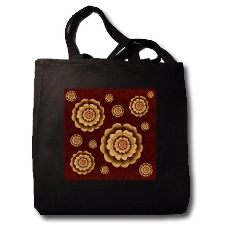 Coffee and chocolate fantasy mandala flowers on dark chocolate muted damask background - Black Tote Bag 14w X 14h X 3d Reviews